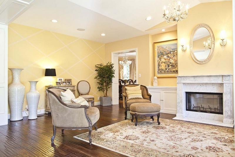 Gắn liền với sự giàu có và cuộc sống xa hoa, màu vàng ánh kim luôn thu hút được mọi ánh nhìn. Chính vì thế, năm 2020 thì không thể thiếu màu vàng ánh kim.Chính gam màu này sẽ khiến căn phòng sở hữu được vẻ cổ điển và sang trọng hơn. Nếu phòng khách nhà bạn nhỏ, bạn có thể kết hợp với màu sơn trắng gương bầu dục và các đường nét được trang trí trên tường.